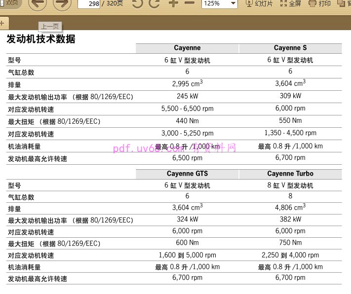 ----- 资料详情 ----- 资料预览:请看截图. 资料简介:PDF格式 适用2014.08起生产的车型 Cayenne 3.0L Cayenne S 3.6L Cayenne GTS 3.6L Cayenne Turbo 4.8L 也包含E-Hybrid 3.0T 的车型 本文网址:https://pdf.uv68.com/a/128.html 欢迎分享本文,分享时请保留出处! Time :02-11 3人喜欢 分享/收藏:喜欢的朋友,记得复制网址 收藏本文!