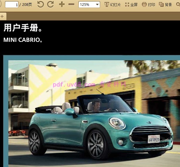 ----- 资料详情 ----- 资料预览:请看截图. 资料简介:PDF格式 200多页 MINI COOPER CABRIO 包括导航的一起发送。仪表按键 操作说明 本文网址:https://pdf.uv68.com/a/133.html 欢迎分享本文,分享时请保留出处! Time :02-27 3人喜欢 分享/收藏:喜欢的朋友,记得复制网址 收藏本文!