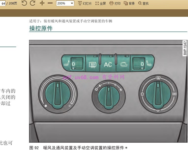 ----- 资料详情 ----- 资料预览:请看截图. 资料简介:PDF格式 包括1.2 升 1.4 升1.6升 1.8升 2.0升 也包括柴油车型 仪表按键操作说明等 本文网址:https://pdf.uv68.com/a/56.html 欢迎分享本文,分享时请保留出处! Time :09-07 3人喜欢 分享/收藏:喜欢的朋友,记得复制网址 收藏本文!