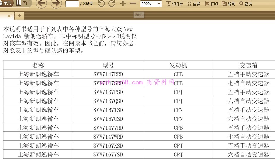 资料简介:PDF格式 230多页 上海新朗逸轿车 SVW7147RRD CFB 五档手动变速器